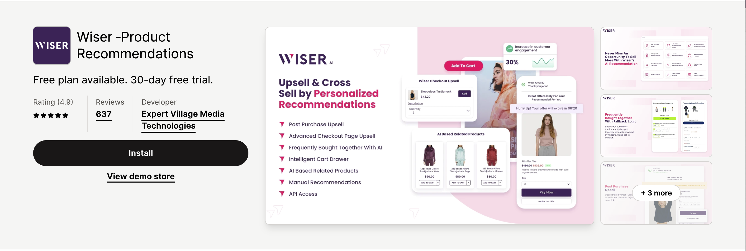 Step 1: Download Wiser Product Recommendation from the Shopify store.