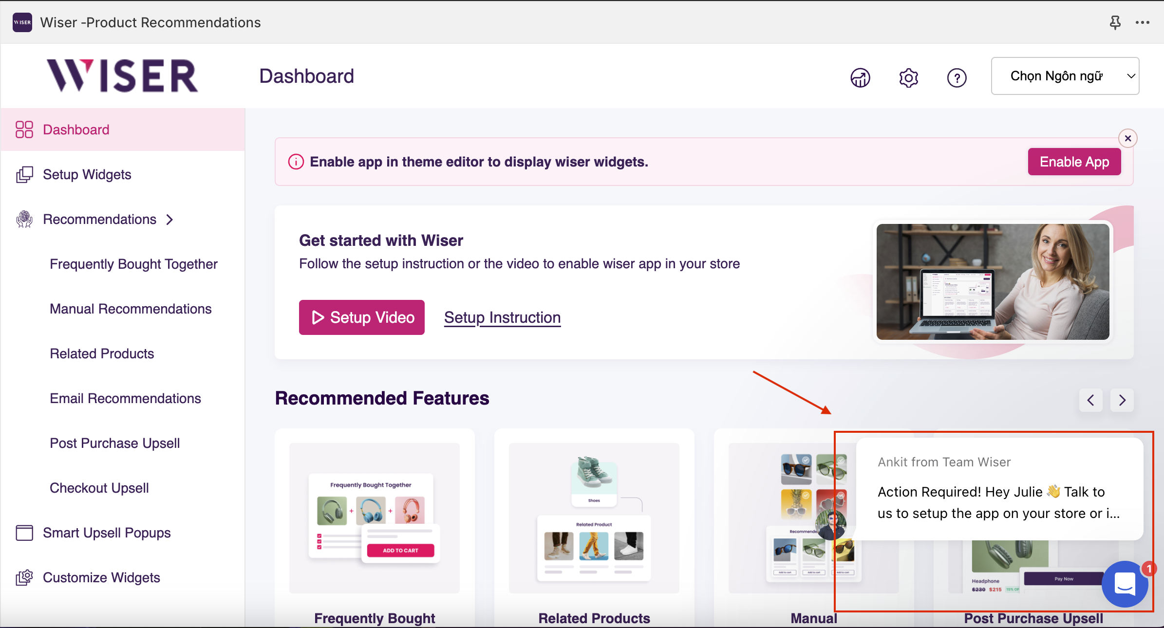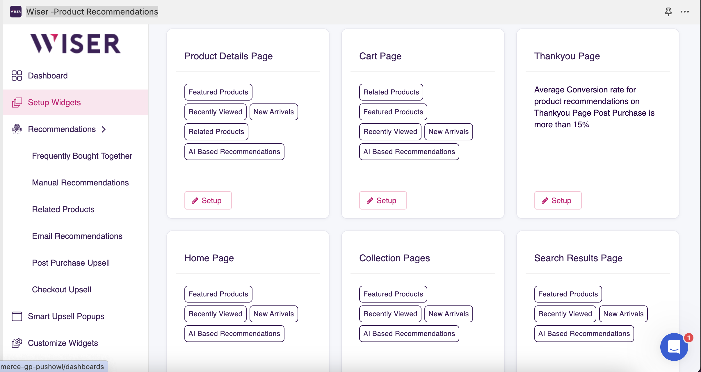 Should you require any help, Wiser Product Recommendation‘s support team is available via live chat at the bottom of the screen.
