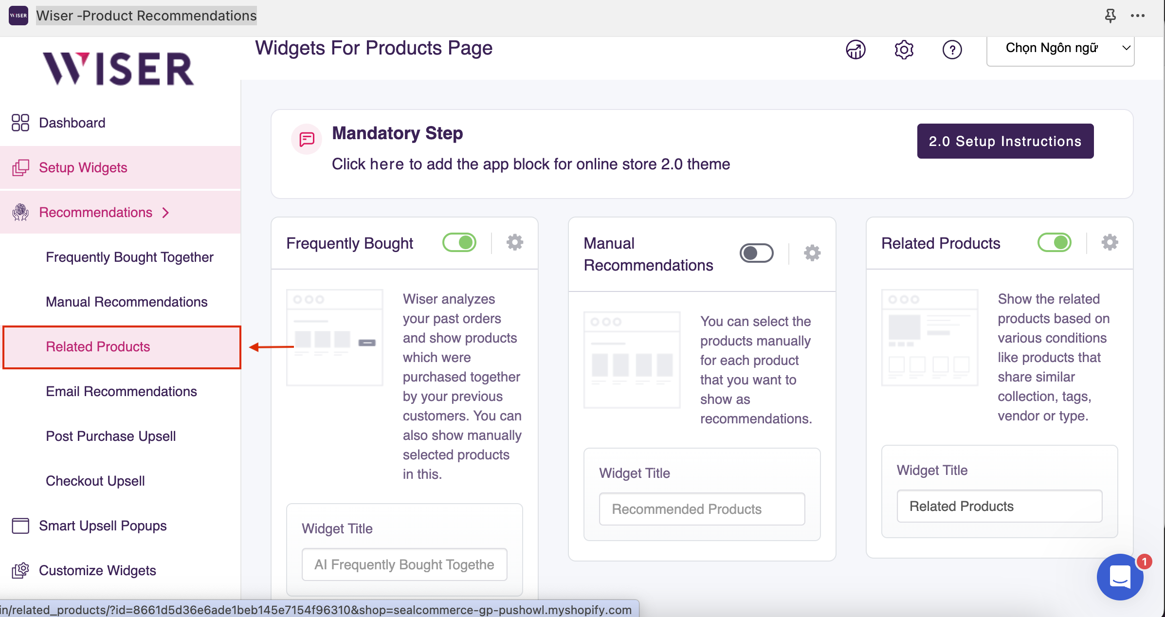 Adjust Wiser ‑Product Recommendations Widgets on GemPages