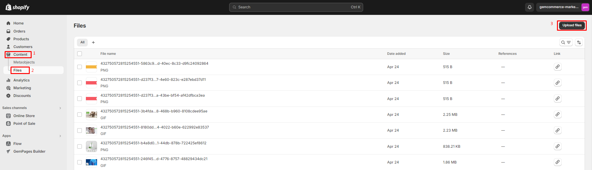 Step 1: Go to Shopify Admin > Content > Files.