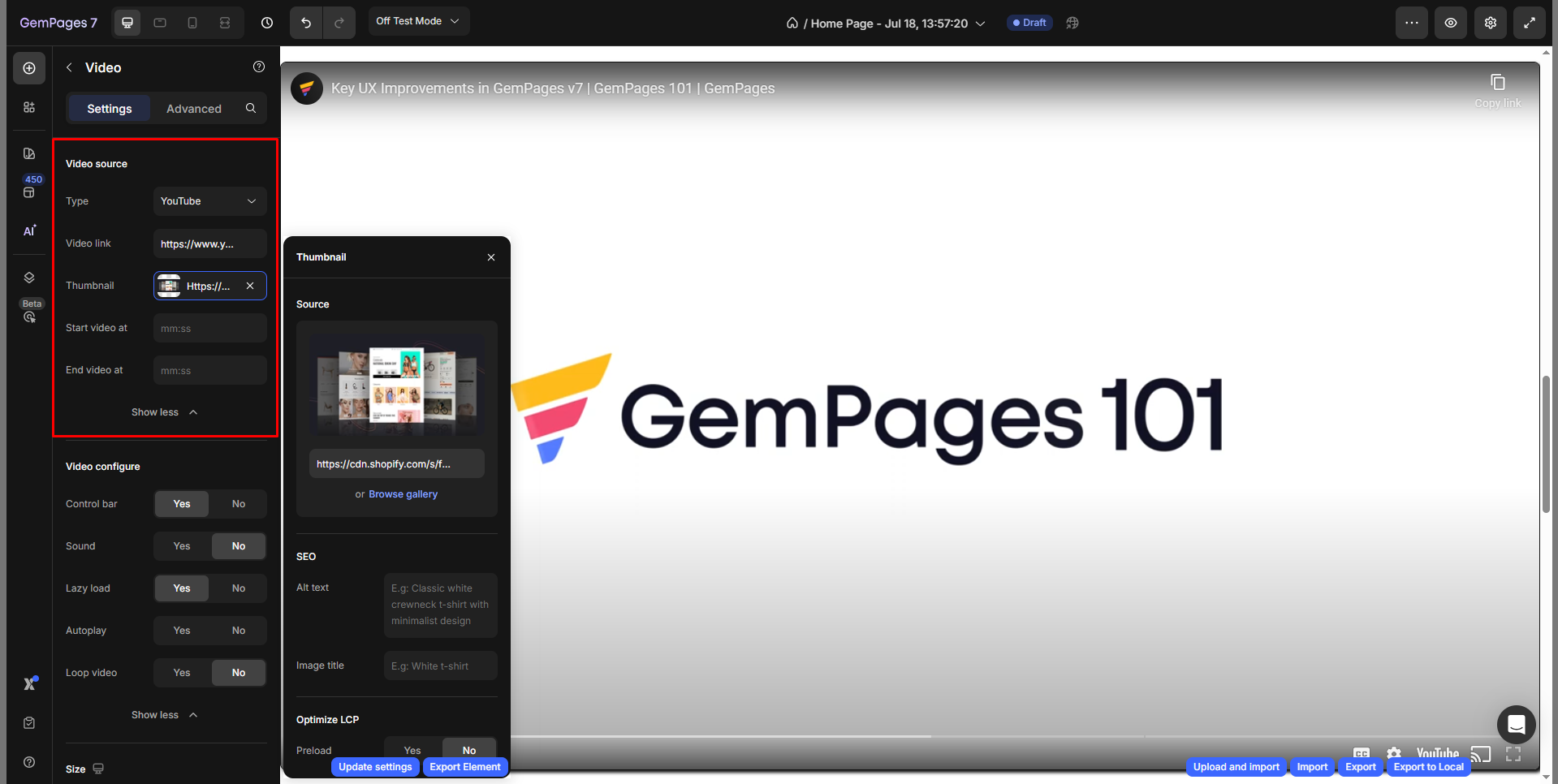 Unlike version 6, the latest version of the editor combines various video elements, such as YouTube and Vimeo, into a single Video element.