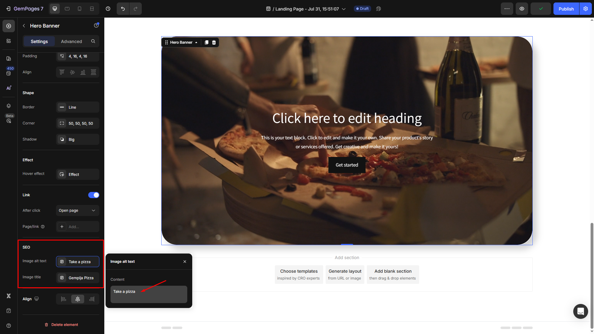 Optimize the video banner for search engines by providing alt text and image title, ensuring better visibility for your store.