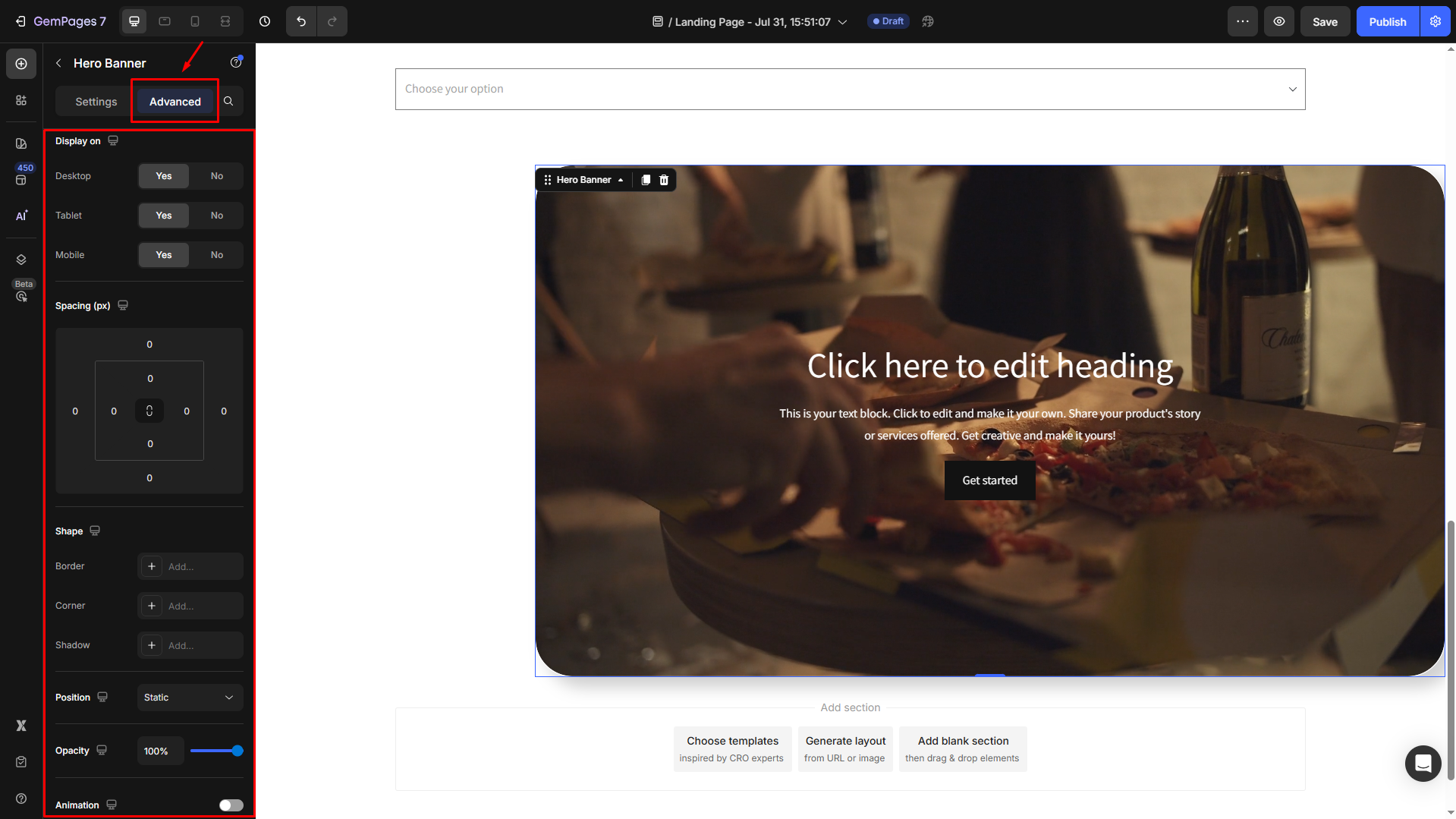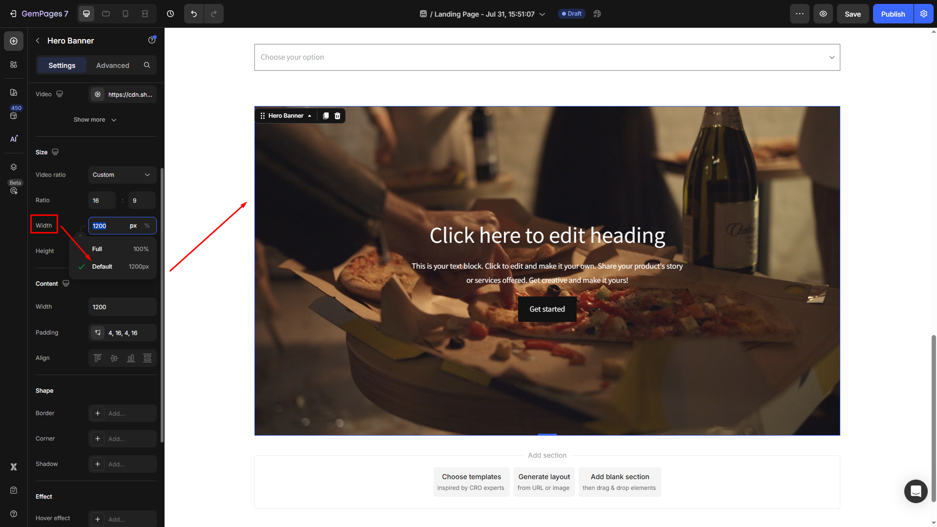 Step 2: Click on the page where you’d like to display the video banner to open GemPages Editor.